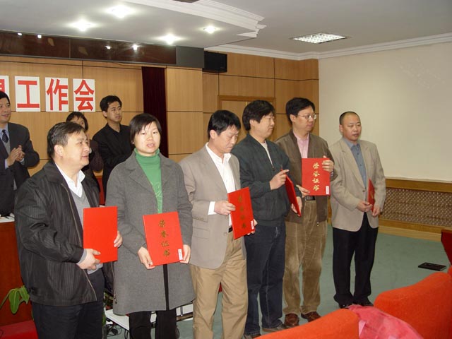 现代教育技术与网络信息中心副主任赵敬中宣布了2004年网络信息工作优秀单位,宣传部、校团委、学生工作处、招生就业工作处、机电工程学院、管理与经济学院、继续教育暨远程教育学院等七个单位获此殊荣。侯光明副校长对获奖单位颁发了获奖证书。