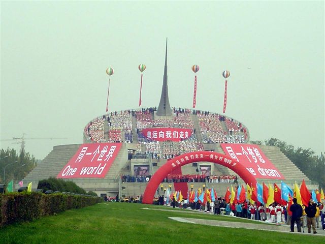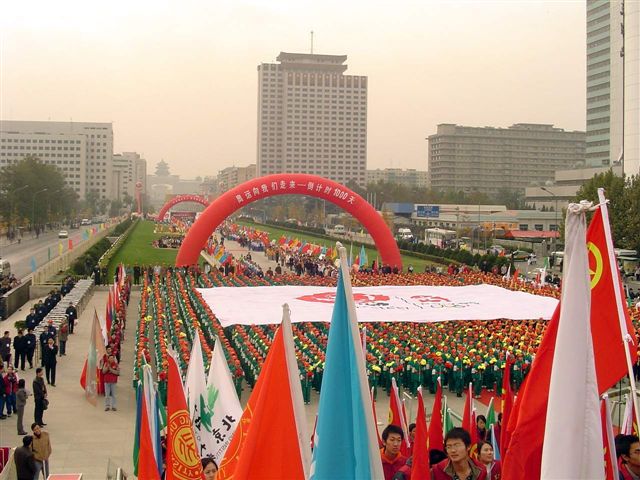 北京各大高校及中心小学生都参加了此次活动,场面宏大,所有参与的志愿者都沉浸在庆祝奥运倒计时1000天的欢乐氛围之中。