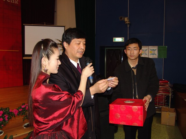 团拜会中间还穿插了抽奖和游戏的丰富多彩的节目。