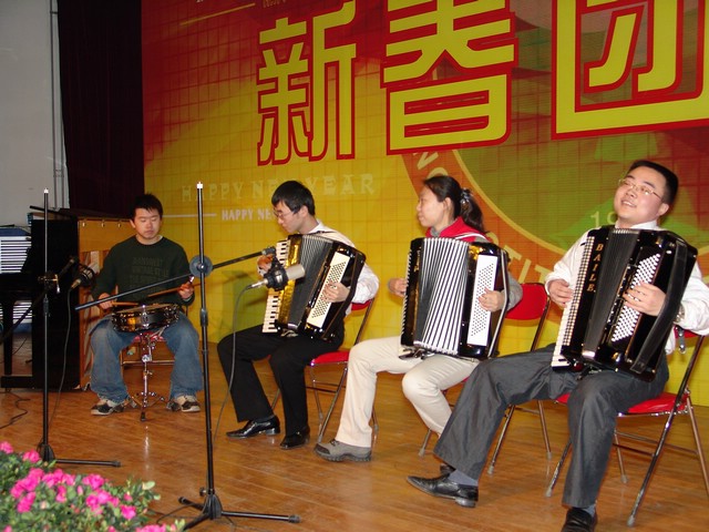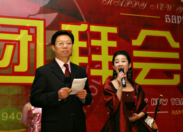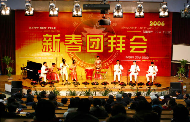 1月19日下午,2006年新春团拜会在民乐合奏《喜洋洋》的欢快乐曲中拉开了帷幕,一年一度的新春团拜会在我校中心教学楼报告厅隆重举行。
