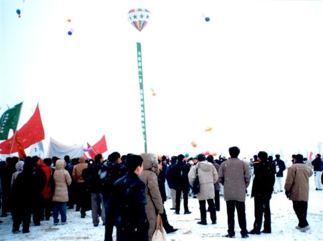 奠基仪式会场锣鼓喧天、彩旗飘扬、鞭炮齐鸣、人山人海,场面相当壮观。