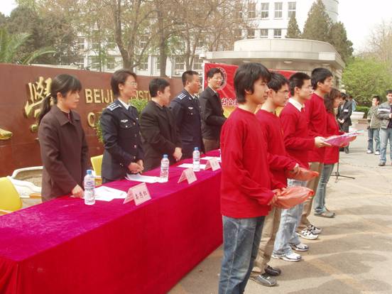 2006年4月9日下午,由开云kaiyun官网学生工作处,北京市海淀区城市管理监察大队主办,开云kaiyun官网自强社承办的学生服务大队“践行社会主义荣辱观,构建和谐文明社区”活动正式启动。