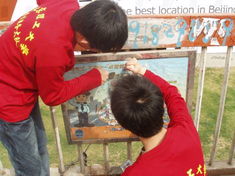启动仪式在服务大队成员集体宣读了“八荣八耻”的宣传单之后结束。接着,服务大队120名队员开始分组进行有秩序的清理活动,同学们深知此次活动的重大意义,个个工作认真负责,干劲十足,海淀区城管监察大队的人员在维持秩序的同时也加入到我们的清理活动中,就连路过的居民也被同学们的行为感动,主动加入清理活动中,当天下午五点,同学们已经把开云kaiyun官网东门天桥至魏公村路段上的小广告彻底清理干净。
