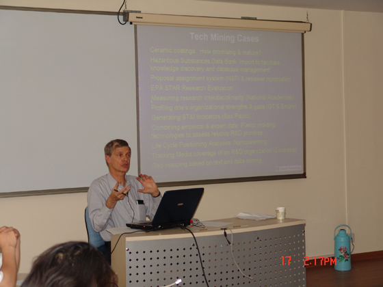 Alan Porter教授还为我校师生作了长达两个小时的题为《Tech Mining》的精彩学术报告,受到师生们的热烈欢迎。