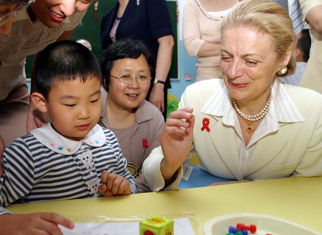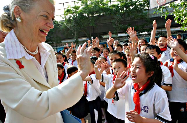 在结束了对幼儿园的访问后,安南夫人一行来到我校附属小学,在这里,孩子们为来宾表演了“预防儿童伤害”项目中的一项内容—紧急疏散演习,用一分钟的时间全体列队完毕,以别具一格的方式热情欢迎了客人们。