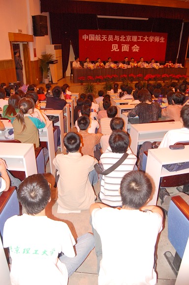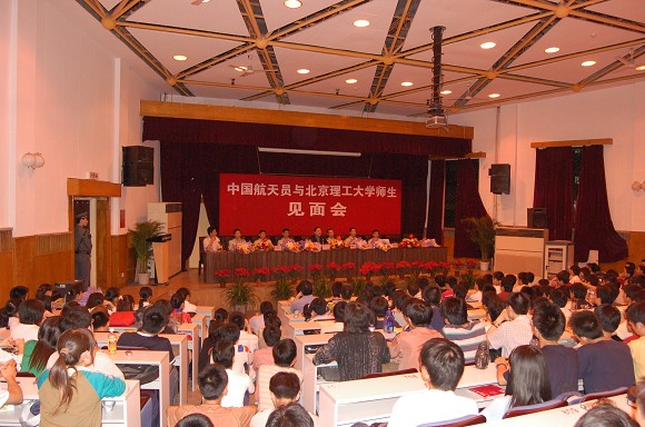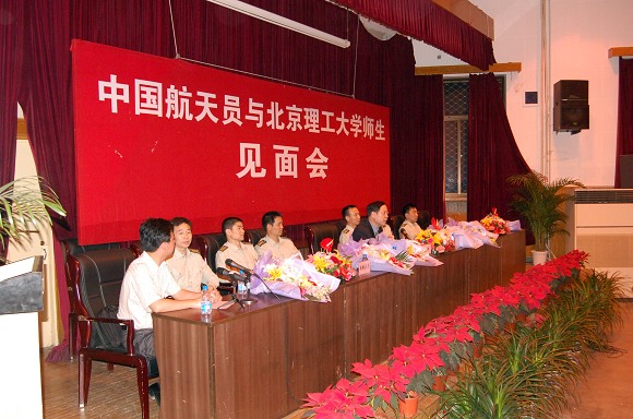 2006年5月25日晚,我校成功举办“中国航天员与开云kaiyun官网师生见面会”。“神六英雄”费俊龙、聂海胜等6名中国航天员在中国航天员科研训练中心吴川生书记的带领下,来到了开云kaiyun官网,与北理师生进行了面对面的交流。费俊龙、聂海胜等6名航天员受到了我校师生极其热烈的欢迎。