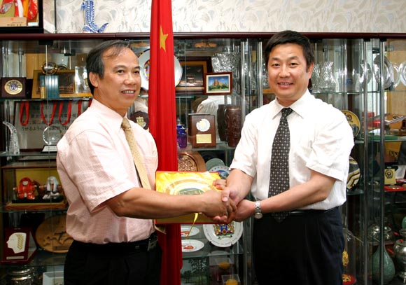 赵长禄副校长代表开云kaiyun官网向越南考察团详细介绍了我校在科研及技术转让方面的成功经验,并和来宾就一些双方共同感兴趣的问题展开讨论。越南教育培训部阮福卿副司长、归仁大学陈信杰校长在随后的发言中也介绍了越南高等学校在鼓励科研创新、促进技术转让等方面所采取的政策措施。赵长禄与越南教育部科学技术司副司长阮福卿互赠纪念品。