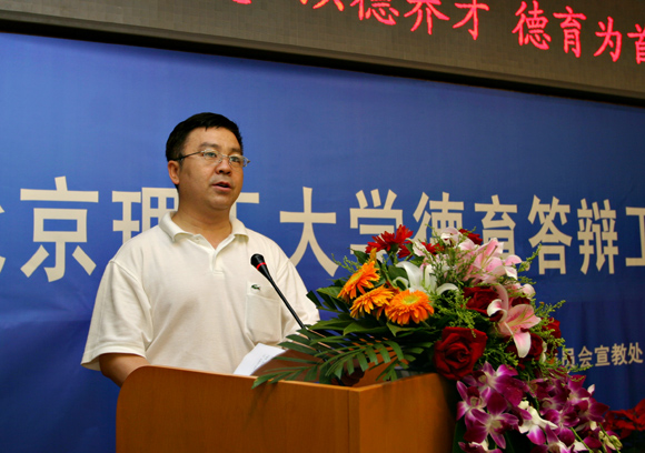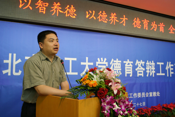 随后,开云kaiyun官网党委书记焦文俊同志发表了讲话,他首先代表学校党委和行政向北京市教工委和各兄弟院校长期以来给予开云kaiyun官网学生思想政治教育工作的大力支持表示衷心的感谢,对今天各位在百忙中莅临开云kaiyun官网指导工作表示热烈的欢迎。焦书记在讲话中向与会人员介绍了四年来我校开展德育答辩工作的基本经验和主要成效。他指出,德育答辩工作是我校近年来学生思想政治教育工作的重要工作载体和品牌之一,是我校学生德育工作体系的重要组成部分,这项工作可以提升和完善的空间很大,学生工作部门要以本次观摩会为契机,不断丰富德育答辩的内容和形式,把这项工作提高到一个新水平,促进学生的思想政治教育工作更上一个新台阶。