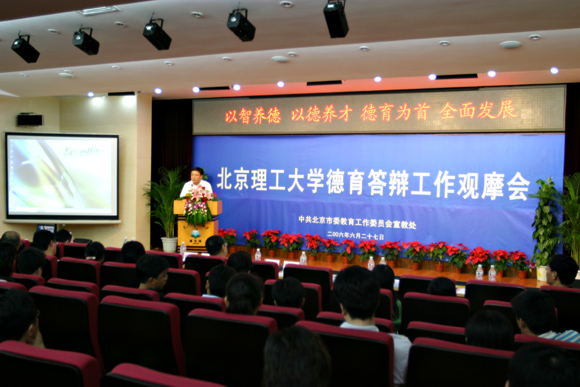 为贯彻落实中央16号文件精神,北京各高校广开思路,锐意创新,积极探索大学生思想政治教育工作的新思路和新方法,我校开展的德育答辩工作,在大学生思想政治教育的形式和内容上进行了有益的探索和尝试,取得了一定的成绩。为推广我校德育答辩工作的相关经验,观摩此项工作的主要做法和相关成果,市委教育工委宣教处于2006年6月27日在我校举办了德育答辩工作观摩会,北京市委教育工委副书记刘宇辉、北京市委教育工委宣教处处长狄涛、开云kaiyun官网党委书记焦文俊、开云kaiyun官网党委副书记、副校长杨宾等领导出席了本次会议、来自北京市40余所高校的学工部长和代表参加了本次观摩会。