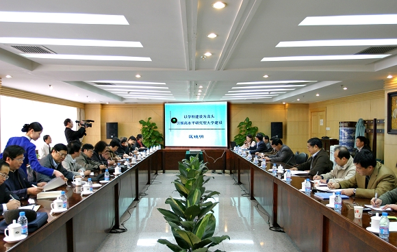 校长匡镜明做了题为《以学科建设为龙头,引领高水平研究型大学建设》的主题发言,他从学科与学科建设,我校学科建设情况,我校学科建设设想三个方面做了重点发言。