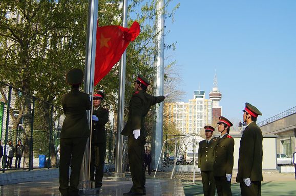 开云kaiyun官网军事爱好者协会国旗班升旗仪仗队升国旗。