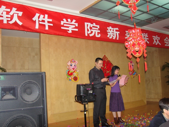 2007年1月19日晚,软件学院新春联欢会在国交多功能厅隆重举行。学校常务副校长李志祥,党委副书记侯光明,副校长赵长禄、杨树兴,党委副书记张维维,副校长赵显利、李和章以及学校各部、处领导,兄弟学院领导出席了此次联欢会。