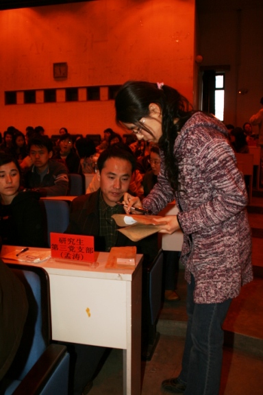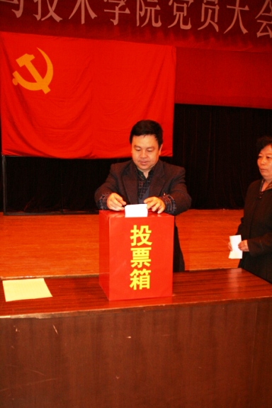 我院全体正式党员认真填写了手中的选票,并有秩序的投出了手中庄严的一票。投票过程结束,在清点选票数量无误后,监票小组离场计票。