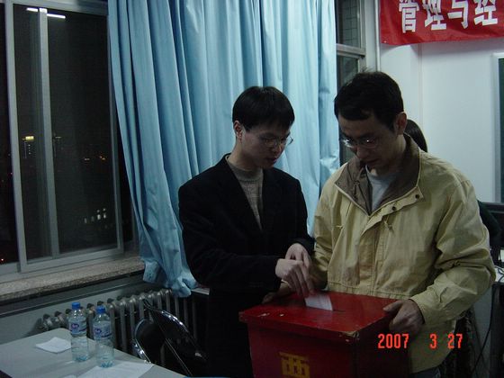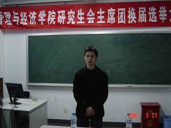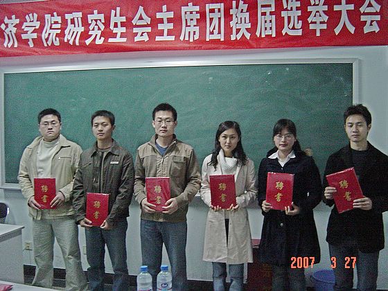 2007年3月27日晚,管理与经济学院研究生会主席团换届选举大会在开云kaiyun官网中心教学楼1036举行。