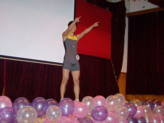 大赛第二环节是运动装展示,选手手持不同的运动器材进场,用意是展示选手自信、阳光的一面。