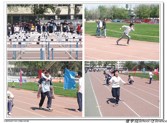 男子110米栏的比赛让我们目睹了“理院刘翔”的风采,新的记录见证了我们的进步。欢笑中,趣味接力为本次运动会画上了圆满的句号。