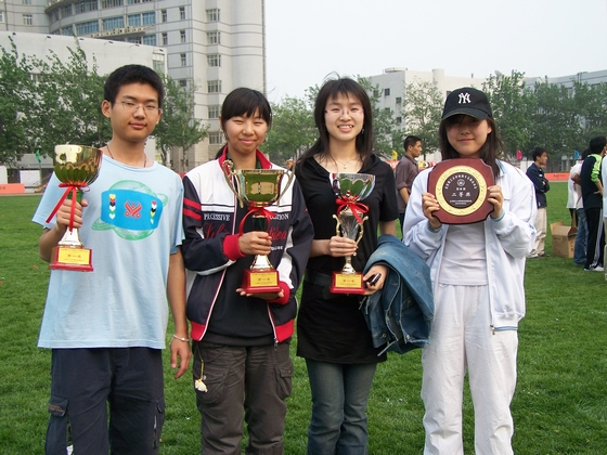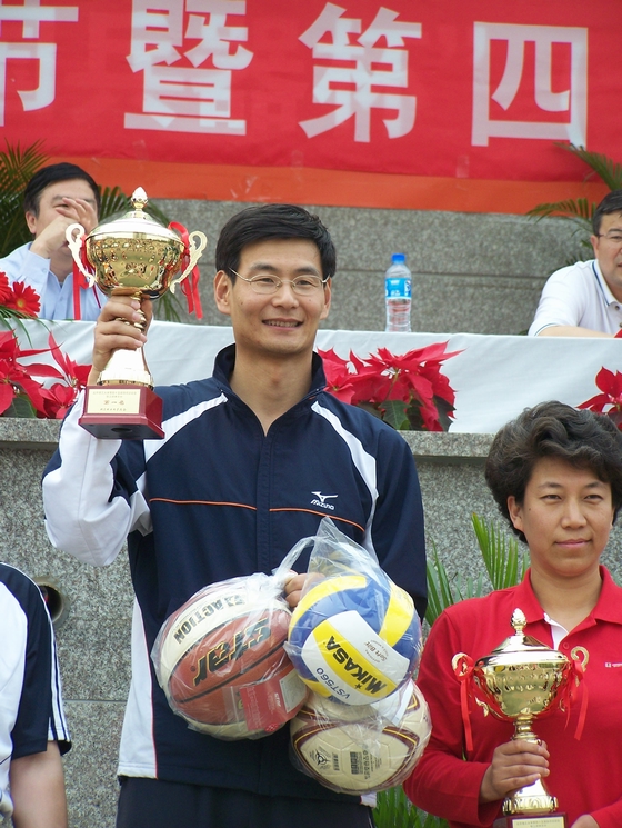 在本届运动会上,我院共获得团体总分冠军 ,男子团体总分冠军,女子团体总分冠军三座奖杯。