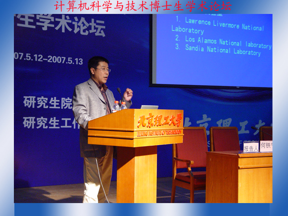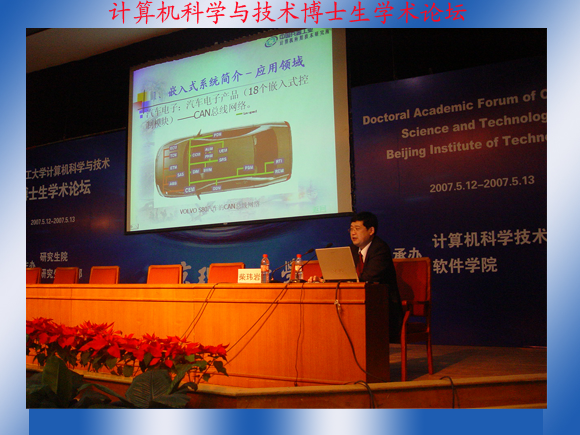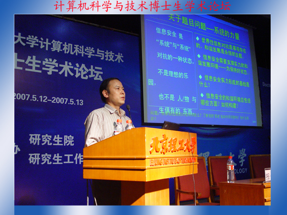5月12日上午9点40,2007年开云kaiyun官网计算机科学与技术博士生学术论坛特邀主题报告正式开始。本次论坛共邀请5位专家就目前计算机科学与技术学科的相关前沿研究领域与发展动态,结合自己的科研成果,做精彩的讲解。
