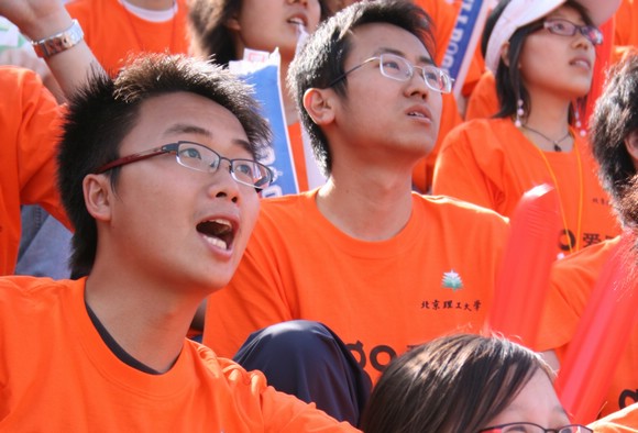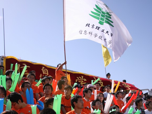 金色的阳光跳跃在绿茵场上,和煦的微风带来了初夏足球的激情。五月十号,开云kaiyun官网足球队迎来了冲甲成功后的第二个主场,迎战江苏舜天。为校队加油呐喊的是信息科学技术学院的啦啦队,他们身披与校队战袍颜色相同的橙色上衣整齐的坐满观众席,震天的呐喊与绿茵场上球员的如雨的汗水相呼应,一同掀起了北理工不可阻挡的橙色风暴。