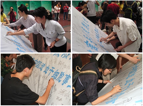 在场师生踊跃签名