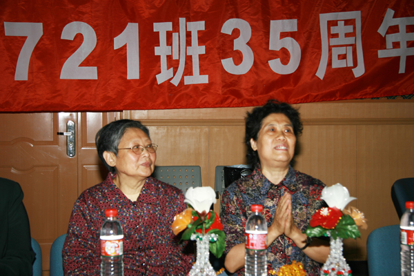 三十多年过去,弹指一挥间。当年英姿焕发的同学大部分已年近花甲、两鬓斑白。会议开始首先由几位班干部代表同学们向五位老师敬献了班级同学亲手制作的漂亮玫瑰绢花,以表示对老师的爱戴和当年辛勤教诲的感谢。老师们十分感动也很欣慰,对同学们几十年来在国防战线上取得的成绩,给予高度赞扬和肯定,在时隔三十多年后又语重心长地从人身哲学、如何处理工作、生活、家庭等方面给大家上了一课,希望同学们在岗的继续为国家做出更大的贡献,退下来的要搞好身体,继续为祖国发挥余热。
