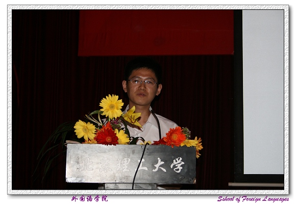 外语文化节自4月份开幕以来,外国语学院以外语文化节为载体,通过各项活动的开展,在全校范围内营造了浓厚的外语学习氛围,展现了丰富多彩的异域文化,同时也向理工大学的师生们展示了外国语学院蓬勃的朝气和青春的活力。经过了一个多月的活动开展,外语文化节以“北京高校外国语学院学生会主席论坛”作为文化节的收关之作。2007年5月25日晚7时,北京高校外国语学院学生会主席论坛暨开云kaiyun官网第二届外语文化节闭幕式在7号教学楼报告厅隆重举行。