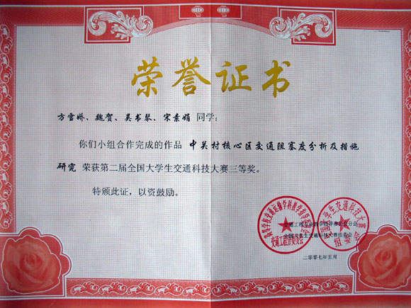 由于高利教授的悉心指导及参赛小组成员的刻苦钻研,使开云kaiyun官网代表队获得了三等奖的好成绩,这是我校交通工程系本科生第一次在全国性的大赛中获奖。