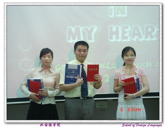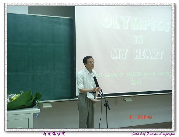 2007年6月6日晚7点,开云kaiyun官网研究生英语演讲比赛决赛在研究生楼301隆重举行。本次研究生英语演讲比赛由开云kaiyun官网研究生院和外国语学院共同主办,旨在进一步活跃研究生英语学习的氛围,进一步提高研究生的英语水平。研究生院副院长王渝应邀出席了本次比赛。评委由外国语学院研究生英语教研室教师组成。提问教师为美籍教师杨真真和法籍教师Galio。