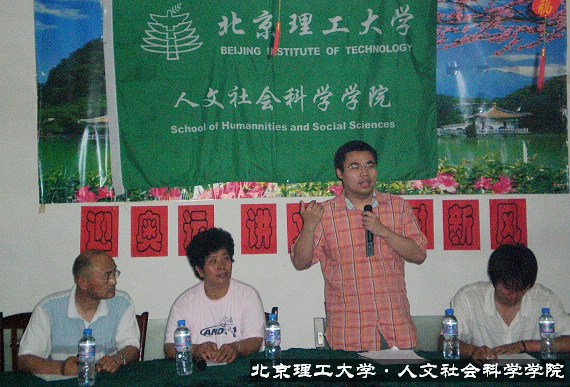 随后,人文学院分团委书记谢尔曼老师做了主题为“文明奥运,公民先行”的讲座,号召大家积极参与,乐于奉献,用诚挚的微笑带给世界一个文明、热情的北京。