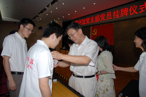 为了迎接建党86周年,保持共产党员的先进性,根据校党委在全校开展“党群零距离”主题活动的要求和直属单位党委的具体部署,图书馆党支部党员挂牌仪式暨重温入党誓词活动于6月15日上午在图书馆报告厅隆重举行。校党委副书记赵平、直属单位党委书记王悦音出席了仪式。