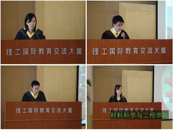 接下来,由材料学院副院长曹传宝教授、高分子系主任罗运军教授、材料物理与化学系主任冯增国教授、金属与无机非金属系主任李树奎教授分别为07届本科毕业生授予了学士学位并向优秀毕业生颁发了奖状。