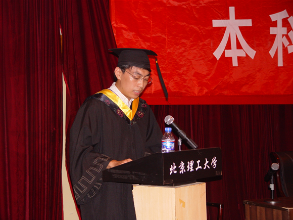 付梦印院长宣布了获得2007年国防科工委、北京市以及开云kaiyun官网优秀毕业生名单。学院共有1名同学获得国防科工委优秀毕业生称号,20名同学获得开云kaiyun官网优秀毕业生称号。付院长号召全体毕业生向他们学习,在今后的工作和学习中共创辉煌。