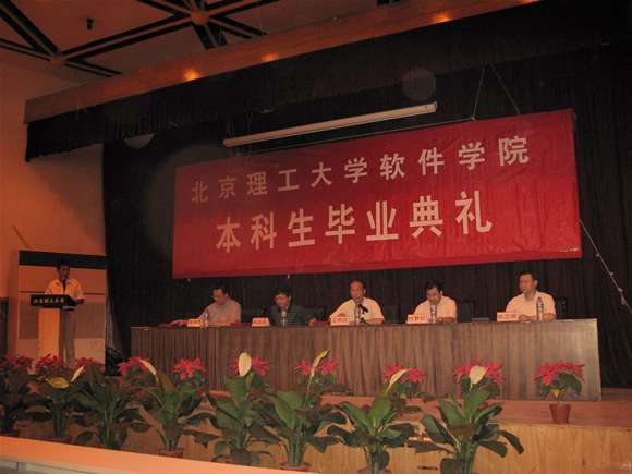 2007年7月11日,软件学院2007届本科生毕业典礼在七号楼报告厅胜利召开。出席此次典礼的领导有软件学院党委书记王树武,软件学院院长付梦印,副院长陈朔鹰,副书记、副院长陈旵明。教师代表胡昌振老师,2003级本科生班主任以及202名本科生参加了此次典礼。毕业典礼由高璞老师主持。