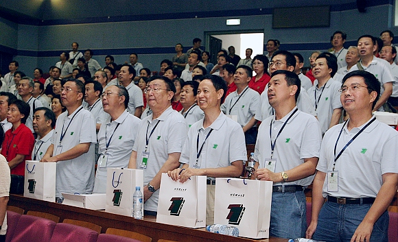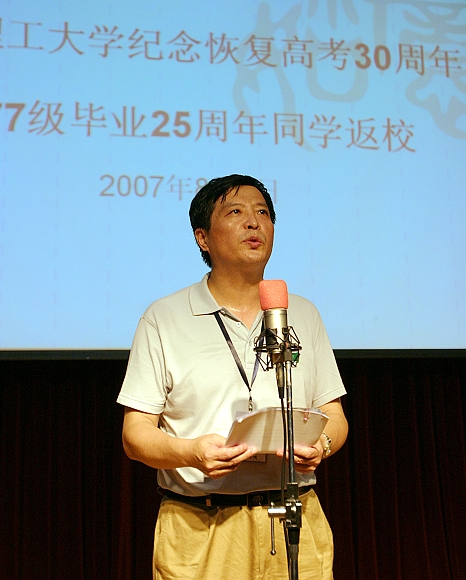 当年为77级同学授课的教师代表我国雷达专家毛二可院士、光学专家陈晃明教授为大会致辞,他们回忆起30年前恢复高考后第一届大学生走进校园为祖国“四化”建设只争朝夕而努力学习的情景,陈晃明教授还唱起了当年的歌曲,台上台下歌声掌声如潮涌,师生们仿佛又回到了30年前。各系同学代表纷纷发言,大家共忆昔日同窗友谊,共叙离别廿五经历,共享人生春华秋实,共襄母校发展大业!