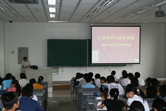 2007年9月13日上午,生命科学与技术学院在研究生楼502教室举行2007级研究生开学典礼,生命学院党委书记李兰东老师、院长邓玉林老师、副院长罗爱芹老师、副院长唐晓英老师、副院长庞思平老师,学院各系所中心的负责人及责任教授也参加了开学典礼,大会由学院分团委书记王征老师主持。