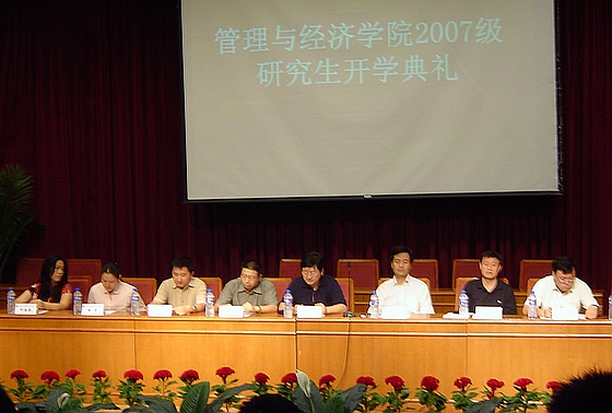 2007年9月14日上午,开云kaiyun官网管理与经济学院2007级研究生开学典礼在中心教学楼报告厅举行。出席该典礼的院领导和老师有:管理与经济学院党委书记李波、院长李金林、副院长韩伯棠、孔昭君、朱东华、纪新华、党委副书记、副院长仇芳,工商管理系系主任刘平青、应用经济系系主任何海燕。