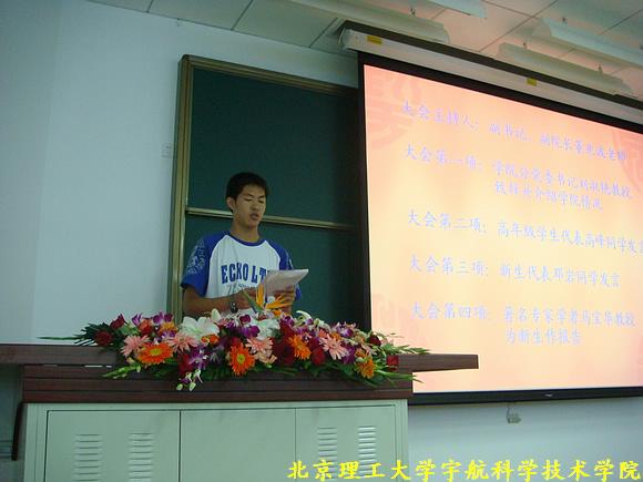 07级安全班班长邓岩同学也代表新生发言,体现了新生的朝气蓬勃,也表达了07级新生继承宇航学院优良传统,努力使宇航精神薪火相传的决心!