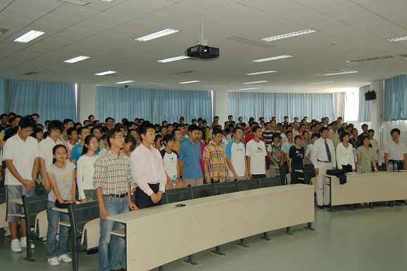 2007年9月20日,信息学院在良乡新校区成功举行2007级新生开学典礼暨专业教育会议。院党委书记薛唯老师、常务副书记张笈老师、副院长廖晓钟老师、副书记副院长郝群老师、院学生工作办公室主任赵志强老师、分团委副书记高路老师、新生辅导员李恒、李姝璇老师以及部分新生班班主任、全体07级同学参加了此次会议。针对各个系,学院分别召开了三场开学典礼和专业教育。