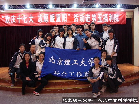 我校社会工作系自2003年起与北京市第五福利院建立了志愿服务结对关系,每周都会组织该系学生前往五福开展心灵陪护、团体工作、教习老人电脑等各种主题志愿服务活动。社会工作的专业志愿精神一届传习一届,志愿学生一拨接着一拨,四年间从未中断,直至今天。