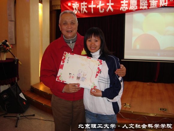 万英同学代表2005级社会工作2班的全体同学向老人们赠送了我们亲手制做的“重阳乐”贺卡,借此向老人们表示我们的崇高的敬意与诚挚的问候。