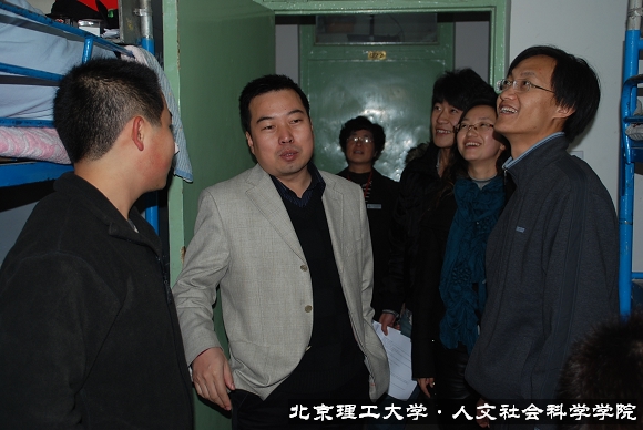 在检查中也发现了个别宿舍存在卫生死角、室内空气不好、衣物随便堆放等问题。针对这些问题,贾院长指出:宿舍是同学们共同学习、生活的场所,宿舍环境和宿舍文化对每个同学的成长期这至关重要的作用,大家要一起来维护宿舍整洁清新的环境,在此基础上一同创建优良的学风,集体成才,集体创优。同学们都表示一定马上行动,今后特别是迎评期间建设好宿舍文化,展现人文学子良好的精神风貌。