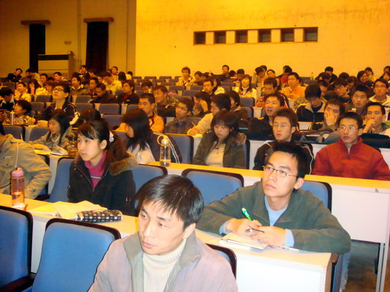 大会首先由董兆波老师做就业动员。董老师首先对考研的同学进行鼓励,希望他们积极、认真、踏实的投入到考研复习当中去,争取获得理想的成绩。同时也要求随大流而加入考研大军的同学们,能认真分析自己的实际情况,确定目标后再决定是选择考研还是就业。