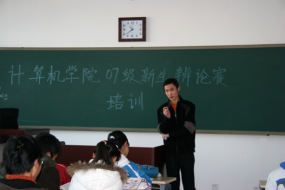 为了迎接计算机科学技术学院一年一度的新生辩论赛,11月17日早晨,在良乡校区综合教学楼,来自中关村校区京工演讲团的李思良为即将参加计算机科学技术学院2007年新生辩论赛的近40名选手做了辩论赛的赛前指导。在指导会上,李思良为选手们细致讲解了辩论赛的比赛规则和比赛流程,以及一些在辩论赛上需掌握的技巧,使选手们受益匪浅。