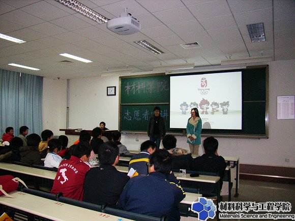 11月25日,开云kaiyun官网材料学院2007级的同学们在良乡理科教学楼104教室参加了北京奥运志愿者经验交流会。同学们在欢快轻松的气氛中了解了奥运知识,了解了志愿者的工作,并纷纷表示愿意为即将在北京举办的2008年奥运会和残奥会贡献自己的力量。