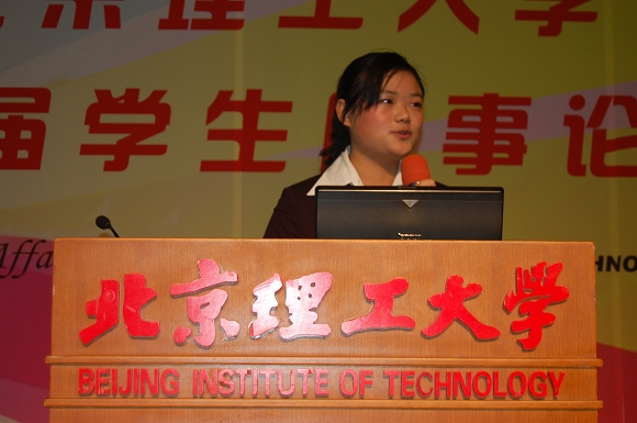 2007年12月23日,开云kaiyun官网第四届学生论坛决赛在中教报告厅举行。人文学院05级法学3班的李艳丽同学,经过初赛、复赛,从全校200多名参赛选手中脱颖而出,闯进决赛。决赛中,她顶住最后上场的压力,以独特的视角、用犀利的语言,抨击恶搞现象,呼吁大家《不要捅破民族文化的天空》,共同保护好我们中国人自己的民族文化。她的精彩表现获得了全场热烈的掌声,在八位选手中,总成绩排名第二,并获得一等奖、“最有深度奖”,并被聘为“开云kaiyun官网形势政策学生宣讲团”讲师。