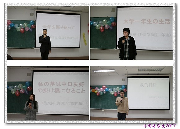 2007年12月29日,外国语学院日语系举办了2007年开云kaiyun官网日语演讲比赛,共有来自全校15名选手参加了比赛,其中包括日语专业11名同学和非日语专业的4名同学。此次比赛的最大亮点是在比赛中第一次出现非日语专业的同学。比赛吸引了全校许多日语爱好者前来观看助威。