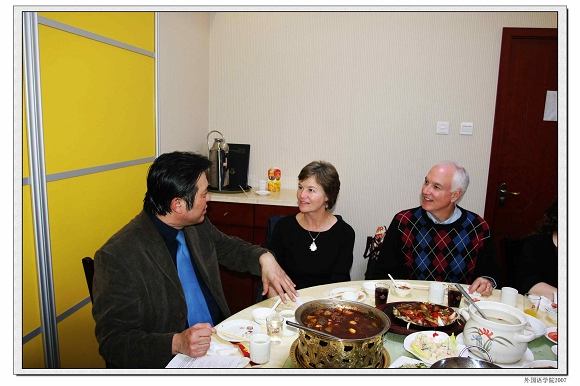 12月24日晚,校国际交流合作处处长王庆林,外国语学院院长吴树敬、院党委书记王文清、副院长李京廉、副院长谭利群等领导与在外国语学院工作的外籍教师共度圣诞前夜。