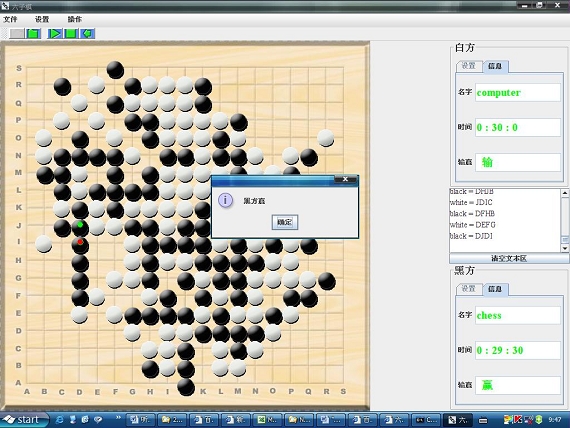 比赛采用双循环赛制,每支队伍对弈一轮过后交换先手。对弈过程通过投影仪显示在赛场的大屏幕上,比赛中,在场的领导和同学们一个个紧紧的盯着大屏幕,密切的关注着比赛进程。比赛中多次出现黑白双方僵持不下的局面,扣人心弦,每当僵持过后一方胜出,会场都会想起热烈的掌声,选手们也是一家欢喜一家愁。
