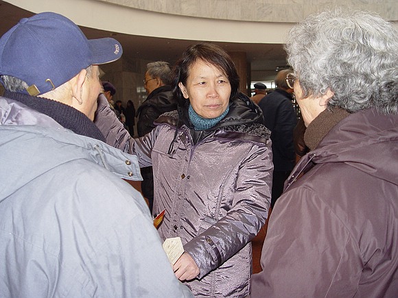 离退休党委书记杨惠萍与老干部交谈。