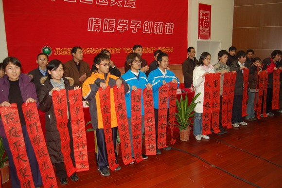 从去年开始,我校老干部书法家协会和无阳斋学生书画社的书法爱好者们为同学们书写春联,通过红彤彤的春联让学生把学校的祝福和关怀捎回家。“向学生送温暖”活动已成为具有开云kaiyun官网传统特色的工作之一,而且活动的形式越来越新颖,内容越来越丰富,对学生的关怀越来越人性化。
